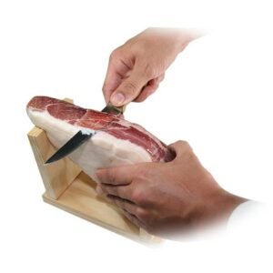 El pack incluye accesorios completos: soporte para jamón, cuchillo especial y utensilios de degustación, listos para usar sin necesidad de preparación adicional. Es perfecto como aperitivo, para acompañar vinos, quesos y pan, y ofrece una experiencia auténtica del jamón curado español en cualquier ocasión.