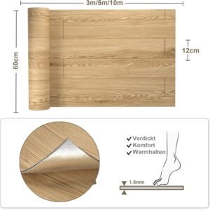 Easy DIY PVC floor with wooden pattern have a first-class visual effect that makes your interior look more elegant and charming. Peel off the backing paper to lay the vinyl floor, and also one person can perform the laying.